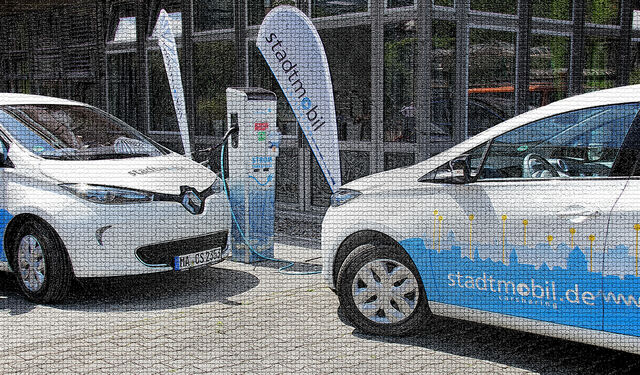 Die Renault Zoe sind in der Klasse B (Kleinwagen) eingeordnet und werden an der Station aufgeladen. Bauartbedingt sind Elektroautos immer Automatikfahrzeuge - auch das erhöht den Fahrspaß in der Stadt um ein Vielfaches.