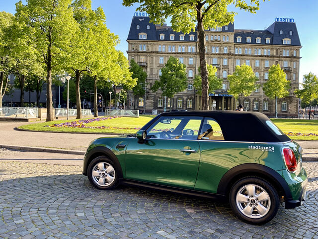 Der stadtmobil-Fuhrpark blüht auf: Mit dem frühlingshaften Grün auf den Bäumen kommt auch das schicke MINI-Cabrio in British Racing Green auf die Straße. Gestalten Sie die sonnigen Tage abwechslungsreich und genießen Sie das Frühjahr mit den klassischen Flitzern! Ab sofort sind die beiden MINIS in Mannheim (Station Tattersall) und Heidelberg (Station Wielandtstraße, Ecke Schröderstraße) für Sie buchbar.