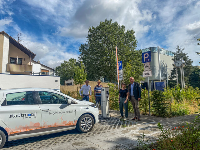 An der Ladesäule wird mit der Ladekarte der Stadtwerke Walldorf geladen - der rechte Platz ist exklusiv für stadtmobil reserviert.