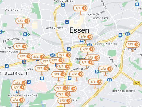 Bis Anfang Juli kommen noch einmal weitere 15 neue Standorte im Essener Stadtgebiet dazu. Darunter Stationen in Kettwig, Überruhr, dem Eltingviertel und in Stoppenberg.