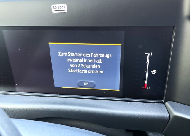 Bei Motorstart muss der Start-/Stopp-Knopf zweimal kurz hintereinander gedrückt werden. Das Display weist zusätzlich darauf hin.