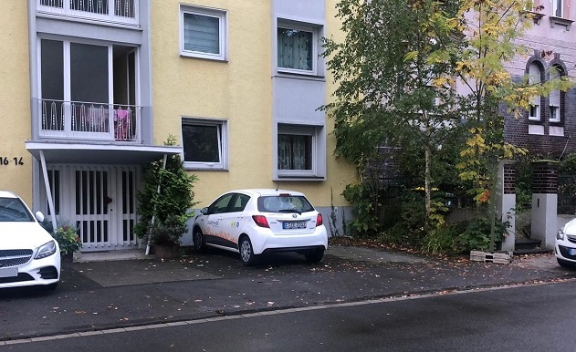 Vor dem Haus Weißenburger Straße 14-16 haben wir eine neue Station in Mülheim-Mitte eingerichtet. Der neue Standort liegt fußläufig von der Haltestelle "Weißenburger Str." der Tramlinie 112. Der Stellplatz ist mit einem stadtmobil-Schild markiert und befindet sich gleich rechts vom Hauseingang. An der Station finden Sie einen unserer sparsamen Toyota Yaris Hybrid mit Automatikschaltung, 5 Sitzen und 5 Türen. Das Fahrzeug ist über den eingebauten Bordcomputer direkt per App oder Zugangskarte zu öffnen.