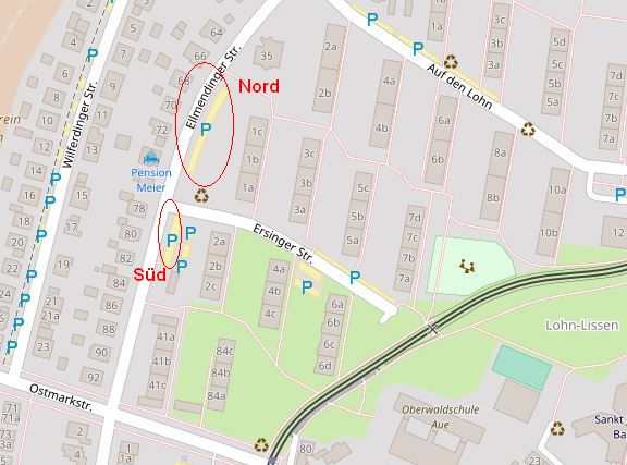 Hier stehen die Fahrzeuge ebenfalls auf beschilderten, markierten Stellplätzen, und zwar auf P15, P17, P18, P19, P20 und P21.