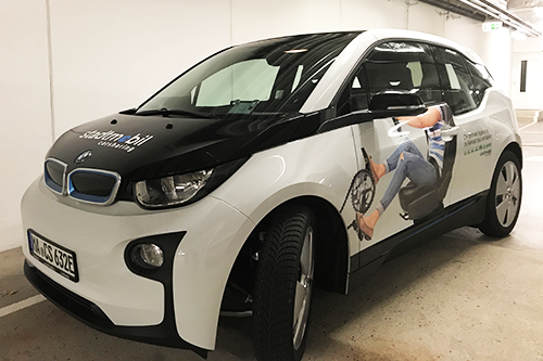 Nach mehr als zwei Jahren guter Erfahrungen mit dem Renault Zoe bietet stadtmobil Ihnen mit dem BMW i3 eine Erweiterung unserer E-Auto-Palette nach oben. Der BMW i3 ist wintertauglich ausgestattet mit Winterrreifen und einer leistungsfähigen Sitzheizung für Fahrerin und Beifahrer.