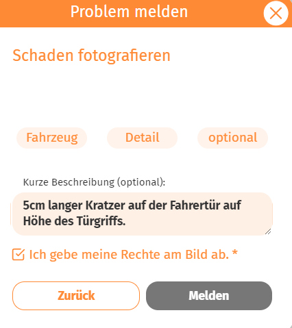 Entdecken Sie einen neuen Schaden, melden Sie diesen bitte über die Funktion “Problem melden”.