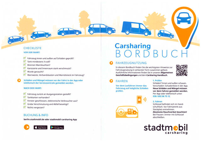 Wir haben alle Bordbücher in unseren Fahrzeugen ausgetauscht. Die neue Generation ist nur noch ein weißes, kartoniertes Faltblatt mit allen wichtigen Informationen samt einer kleinen Mappe für Schein und Karten.