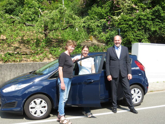 „Schön, dass auch die Kleingemünder ab sofort einfach und bequem ein Fahrzeug von stadtmobil nutzen können“, freut sich Bürgermeister Frank Volk über das Auto an der neuen CarSharing-Station in der Saarstraße 23-25. „Uns ist der Klimaschutz wichtig,“, erklärt der Bürgermeister und möchte prüfen lassen, ob man mit Fahrzeugen von stadtmobil bei Bedarf den Fuhrpark ergänzen könne. Er begrüße, dass CarSharing in Neckargemünd so gut angenommen werde und die Bürger damit auch privat die Klimaschutzbemühungen der Stadt unterstützen.