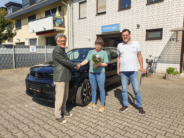 Hans Raab, langjähriger Kunde, hat in einer Verlosung ein Auto gewonnen und stellt stadtmobil das Fahrzeug zur Verfügung.